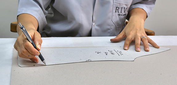 Before proceeding to the next stage, the leathers made ready for cutting are checked together with the Design and Pattern department for matching and compliance.